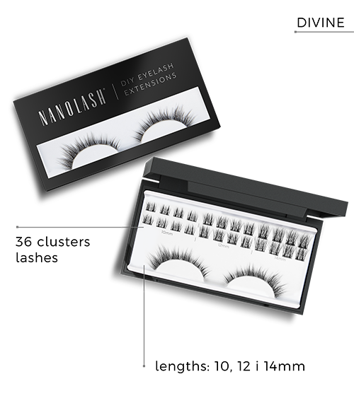 Τα DIY τουφάκια βλεφαρίδων από τη Nanolash εξασφαλίζουν αξεπέραστη ποιότητα. Η ανθεκτική στην παραμόρφωση, ελαστική δομή των βλεφαρίδων τις κάνει να δείχνουν τέλειες για έως και 7 ημέρες. Οι ψεύτικες βλεφαρίδες βρίσκονται σε λεπτές, εύκαμπτες λωρίδες. Οι αρθρώσεις είναι εντελώς αόρατες όταν εφαρμόζονται σε πραγματικές βλεφαρίδες, έτσι φαίνονται φυσικές και η γραμμή των βλεφαρίδων φαίνεται ορατά πιο πυκνή. Η θήκη περιέχει 36 τουφάκια βλεφαρίδων σε τρία μήκη: 10, 12 και 14 mm. Ανάλογα με το μέγεθος των ματιών σας, αυτά είναι αρκετά για 4-6 εφαρμογές. Η εφαρμογή των DIY βλεφαρίδων σε τουφάκια απαιτεί πρόσθετα αξεσουάρ. Μπορείτε να τα αγοράσετε ξεχωριστά ή σε σετ βασικού εξοπλισμού στην ιστοσελίδα μας.